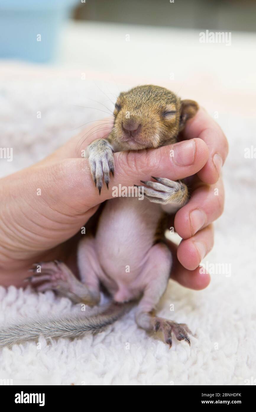 Western Gray Squirrel Sciurus Griseus Three Week Old Orphaned Baby Fell From Nest After Being Disturbed By Gardeners Wildcare San Rafael Califor Stock Photo Alamy